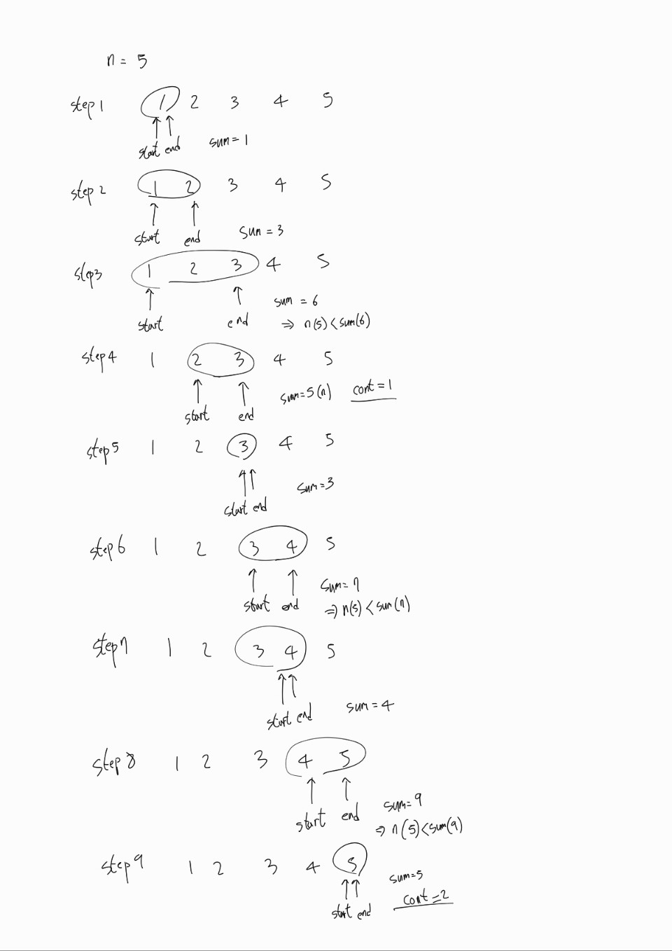 처음볼때는 쉽게 이해되지 않는데욥! 구간 사이의 합을 계산하며 구간을 이동시키며 전체탐색을 한다고 생각하면 됩니다!