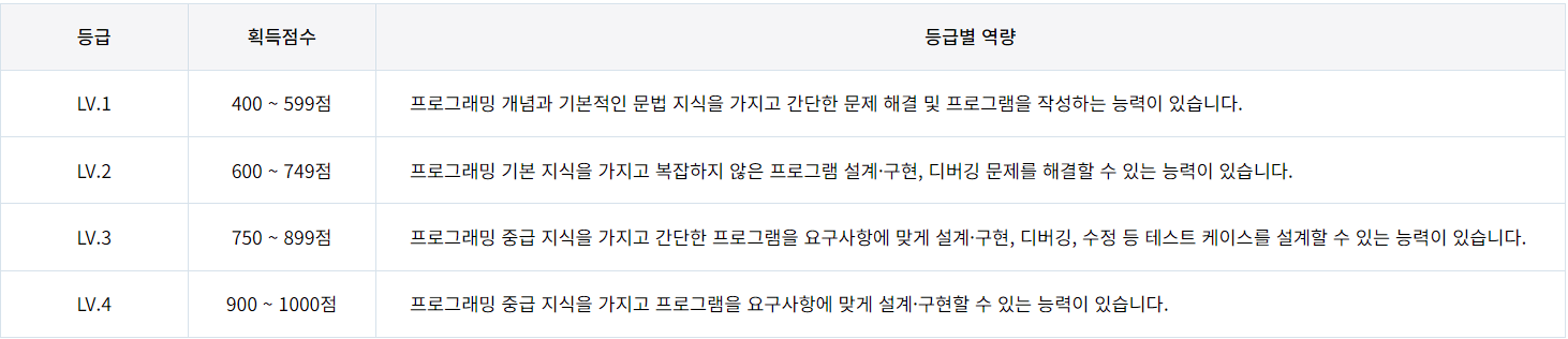 점수에 따라 인증 등급(Lv)이 부여됩니당(사실상 합격만으론 아쉬운,,,,)