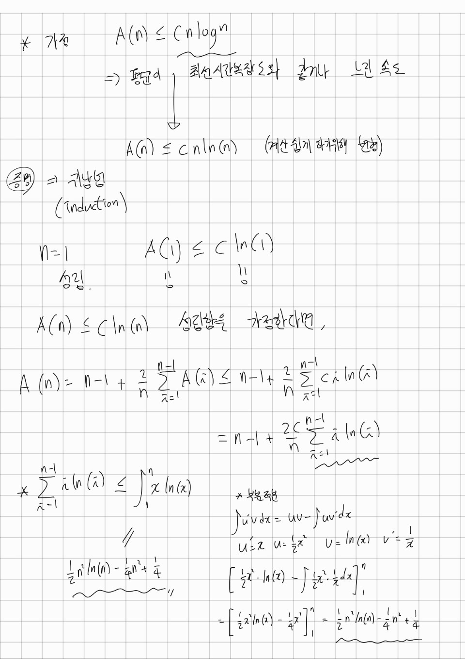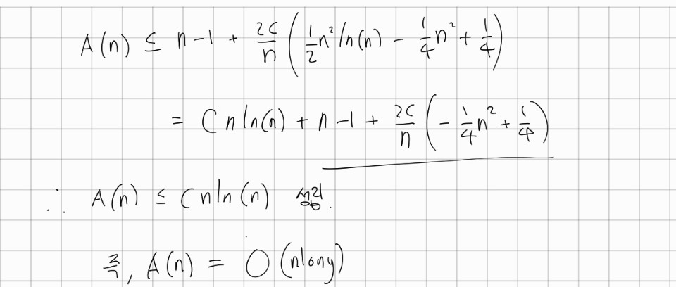 평균적인 경우에는 재귀적인 식을 수학적으로 증명할 수 있습니다!