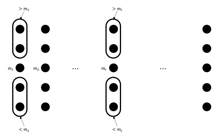 데이터를 각각 5개씩 분할한 후, 5개의 중앙값(m, median)을 찾아준다