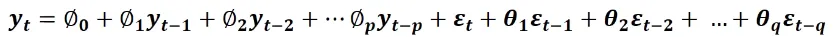 → y_t의 과거 lag된 변수들(p개) + 과거 error 변수들(q개)로 회귀모델 생성