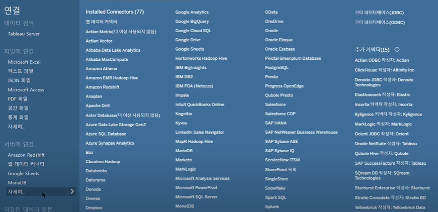 파일 및 서버를 통해 다양한 방법으로 데이터 연결 가능(기본적인 엑셀 파일부터 구글 드라이브 연동 등등)