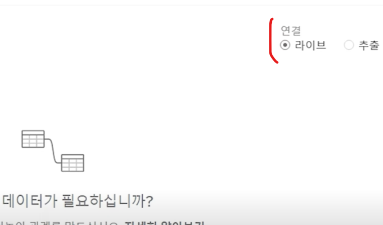 데이터를 연결하는 방식으로는 크게 2가지가 있습니다! (라이브, 추출)
