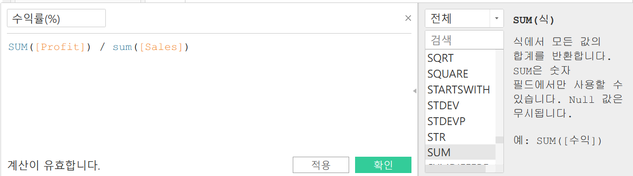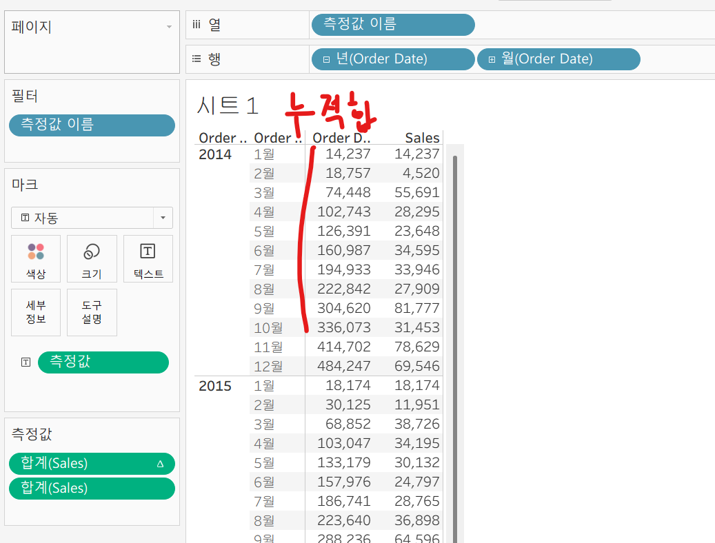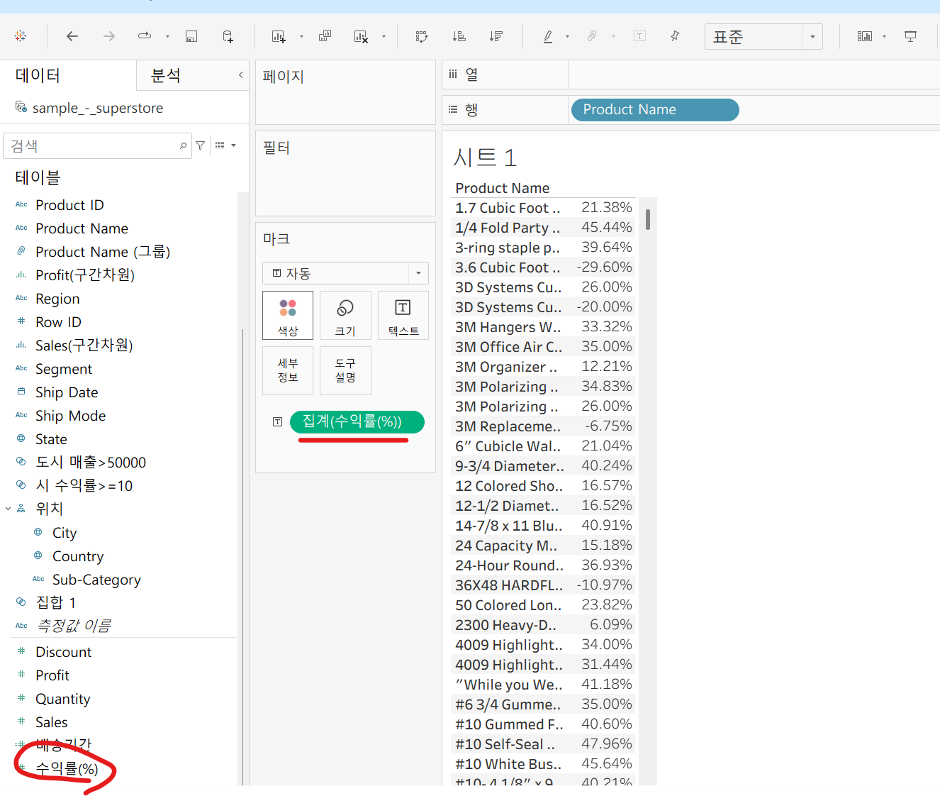 # 테이블 계산 - 뷰에보이는 내용 바탕으로 데이터 계산(기본계산 -> 데이터 원본에 대한 계산)