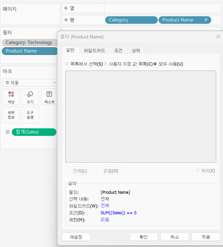 범주필터 우선적용 -> 매출 필터 종속적 적용