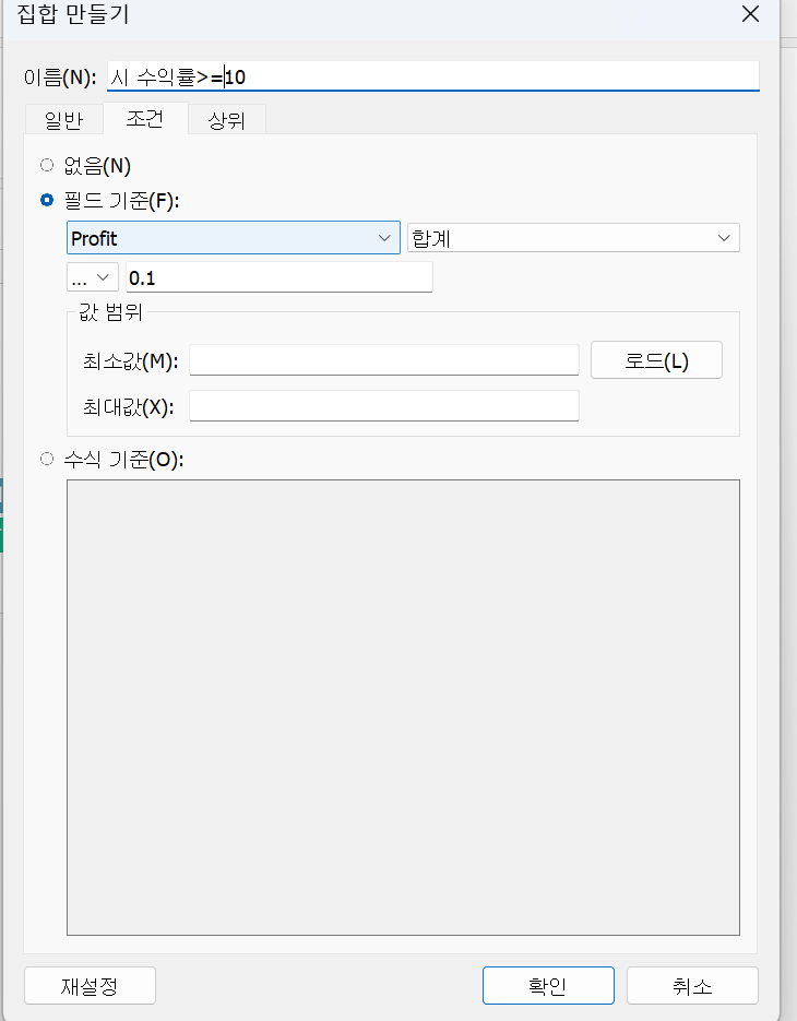 # 집합 - 사용자가 조건설정, 조건 기반 데이터 구분
