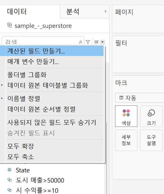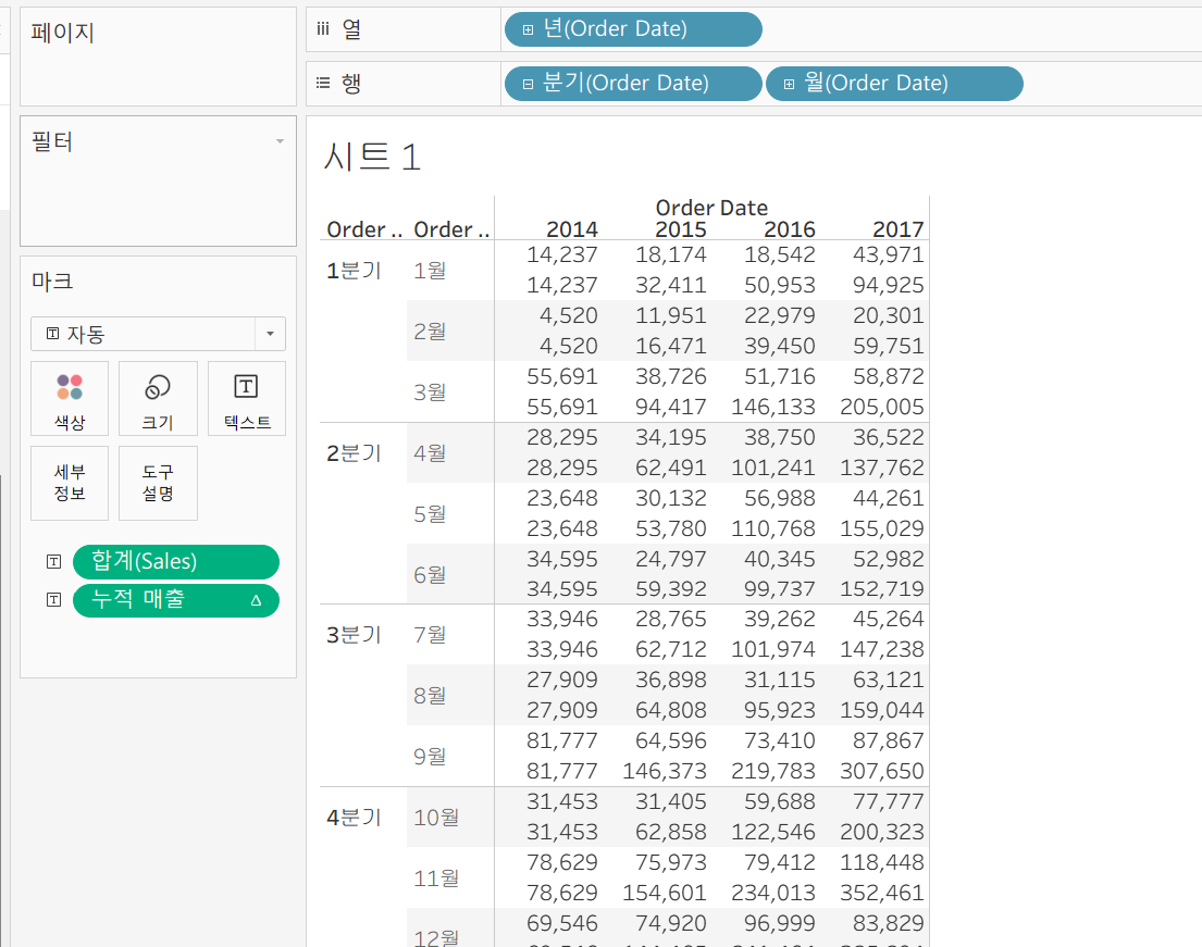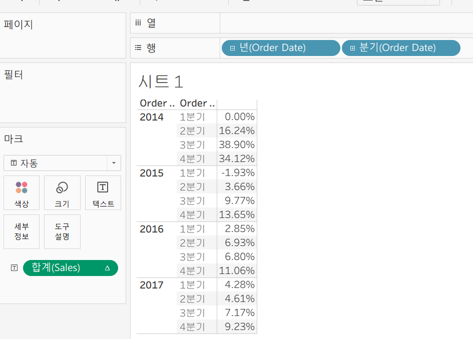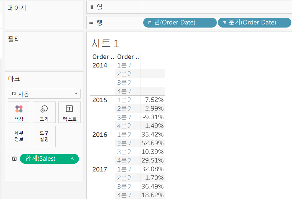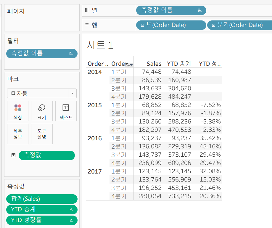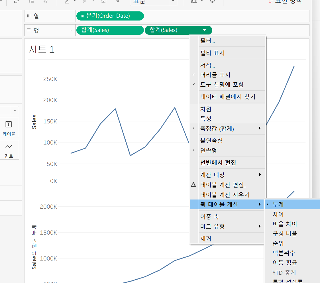 # 퀵테이블 계산(1) - 테이블 계산에서 가장 자주 쓰이는 계산 유형을 클릭만으로 가능하도록 구현