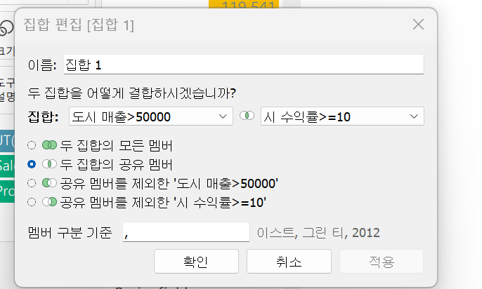 # 결합된 집합 - 여러 조건을 설정하여 집합 생성