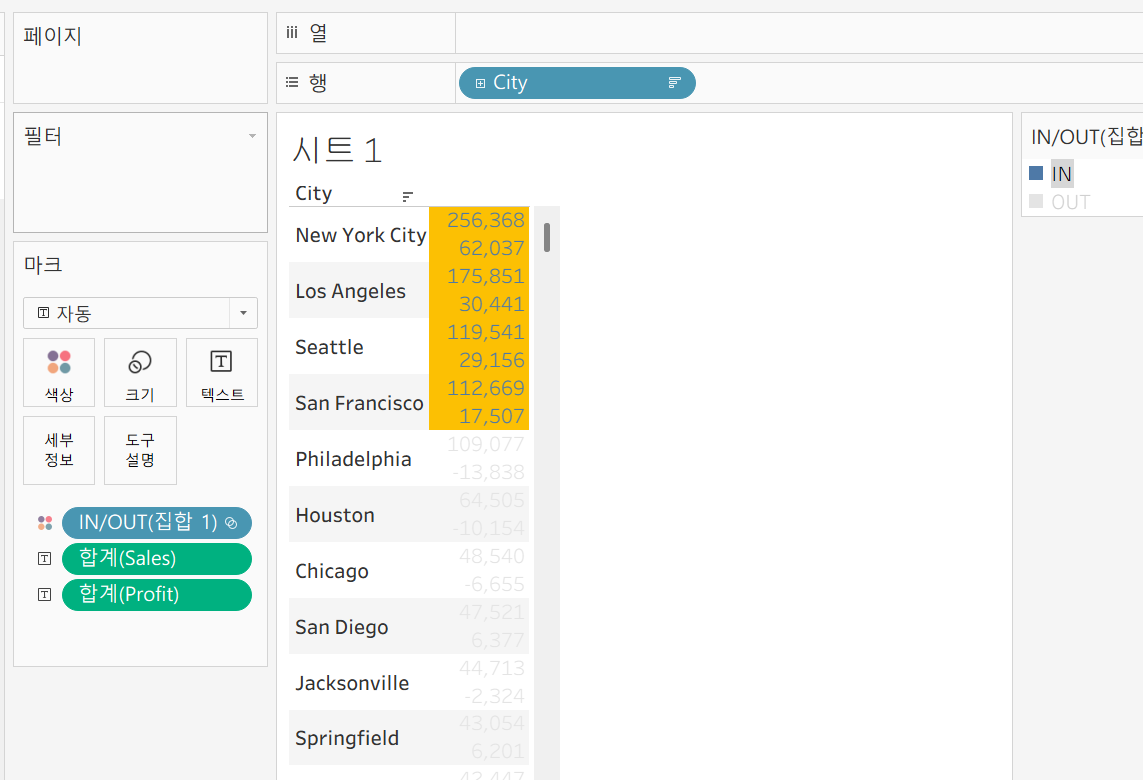 예) 수익 많이 낸 상위 10개 도시 표시