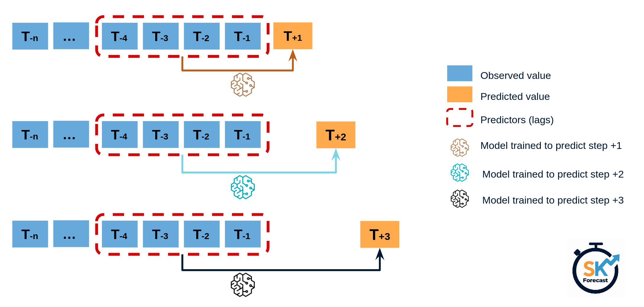 -> 각각의 새로운 예측이 이전 예측을 기반으로 재귀적(recursive) 예측