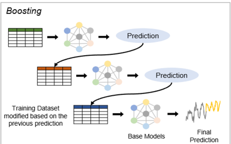 -> 모델들을 순차적으로 학습시키고 결합하는 방식