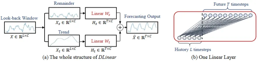 | Contribution | 시계열 예측 연구의 패러다임 전환 1. "무조건 복잡한 모델이 좋다"는 편향에 대적함, 시계열 데이터의 본질(추세/계절성)이 더 중요함을 입증 2. 향후 모든 시계열 연구에서 비교해야 할 강력하고 단순한 베이스라인(LTSF-Linear)을 제시 |