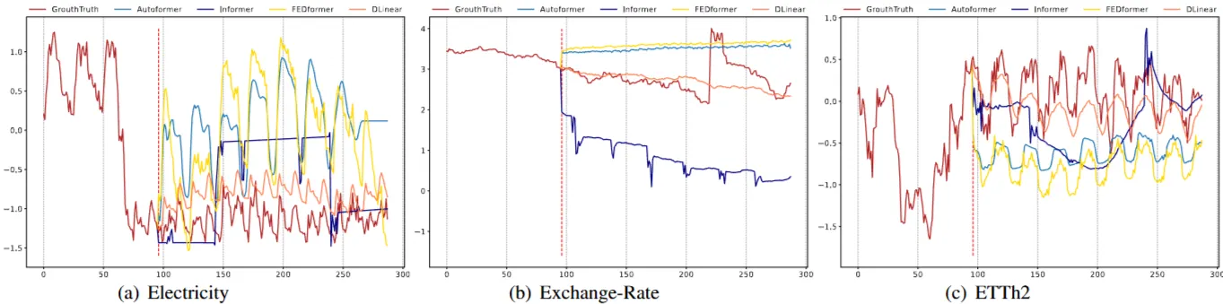 이에 LTSF-Linear 모델의 제안 및 Transformer와 비교