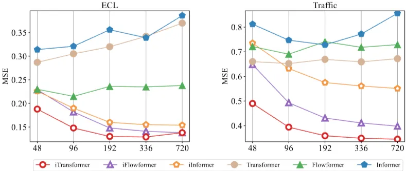 - → iTransformer가 훈련에 보지 못한 변량에 대해 더 뛰어난 일반화 능력