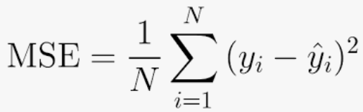 -> 실제 타겟값과 예측 타겟값의 차이를 제곱하여 더한 후 데이터 개수로 나눠줌