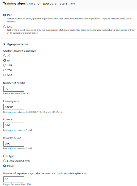 PPO, SAC 학습방법 / 배치사이즈 / 에폭수 / 학습률 / 손실함수 등등 여러 조건들을 조절할 수 있습니다