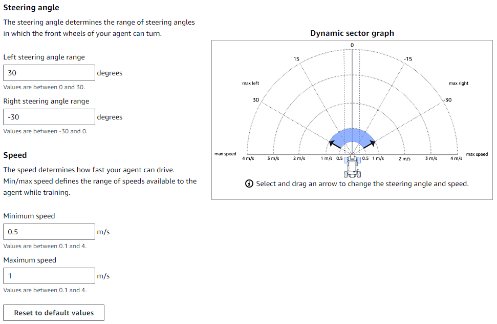 Continuous는 최소, 최대 각도와 속도를 지정해주면 해당 범위 내에서 차랑이 주행하게 됩니다