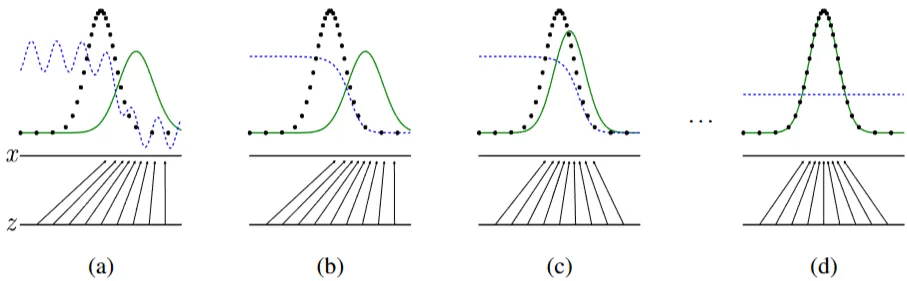 → 단순한 분포$p_z(z)$에서 복잡한 실제 분포($p_{data}(x)$)로 변환해나가는 과정