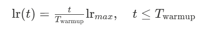 - $lr_{max}$: 웜업 단계가 끝날 때 도달하는 최대 학습률