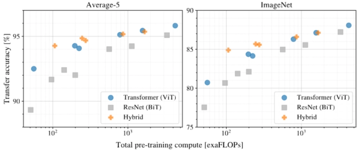 - 동일한 계산비용으로 ResNet(BIT) 보다 VIT가 더 높은 성능을 보임 (계산 효율성)