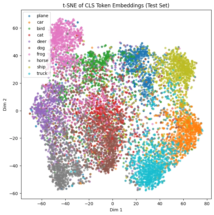 | 📌 optimizer: AdamW learning rate: 1e-3 loss: CrossEntropyLoss batch size: 128 epoch: 100 📌 img_size = 32 # 입력 이미지 크기 (CIFAR-10: 32x32) patch_size = 4 # 패치 크기 (4x4) in_channels = 3 # 입력 채널 (RGB) embed_dim = 48 # 패치 임베딩 차원 num_heads = 4 # 멀티헤드 어텐션 헤드 수 dropout = 0.1 # 드롭아웃 비율 num_layers = 4 # Transformer 인코더 레이어 수 num_classes = 10 # 분류 클래스 수 (CIFAR-10) mlp_ratio = 4.0 # FFN(FeedForward) 중간 레이어 차원 비율 |